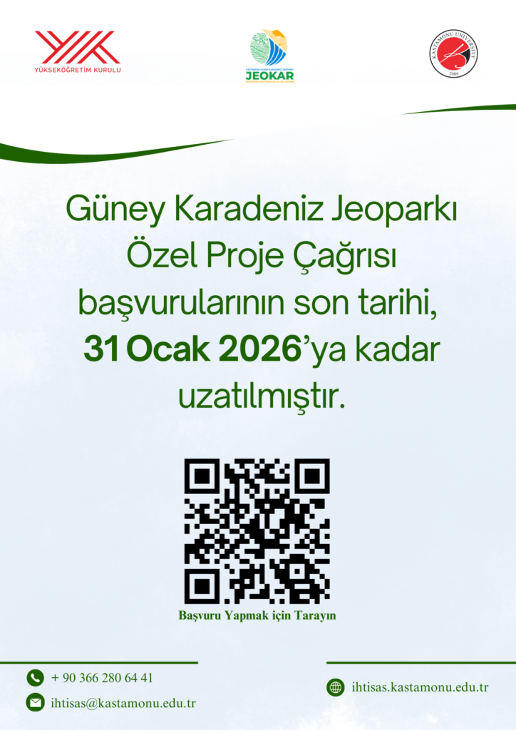 Güney Karadeniz Jeoparkı Özel Proje Çağrısı başvurularının son tarihi, 31 Ocak 2026’ya kadar uzatılmıştır.