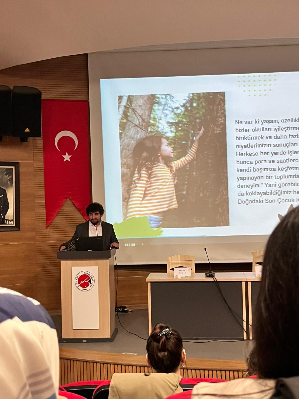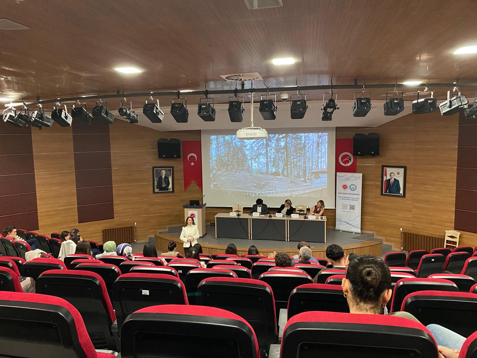 14 Kasım 2025 tarihinde “Çocuk Eğitim Uygulama ve Araştırma Merkezi” tarafından düzenlenen ve Kastamonu Üniversitesi İhtisaslaşma Koordinatörlüğü tarafından desteklenen yürütücülüğünü Doç. Dr. Aysun ATA AKTÜRK’ün üstlendiği “Erken Çocukluk Eğitiminde Doğa Temelli Yaklaşım ve Orman Okulu Pedagojisi” isimli panel gerçekleştirildi. 09:30’da başlayıp 17:30’a kadar süren panel boyunca alanda uzman akademisyenler ve uygulayıcılarla eşine az rastlanır bir bilgi ve deneyim paylaşımı yolculuğuna çıkıldı. Sayfalarca notlar alındı, doğa ve orman okulu pedagojisinin kuramsal ve felsefi temellerine mercek tutup, çocuklarımıza çeşitli gelişim alanlarında sunabileceği potansiyel katkılar hakkında videolar ve görseller aracılığıyla tartışıldı.